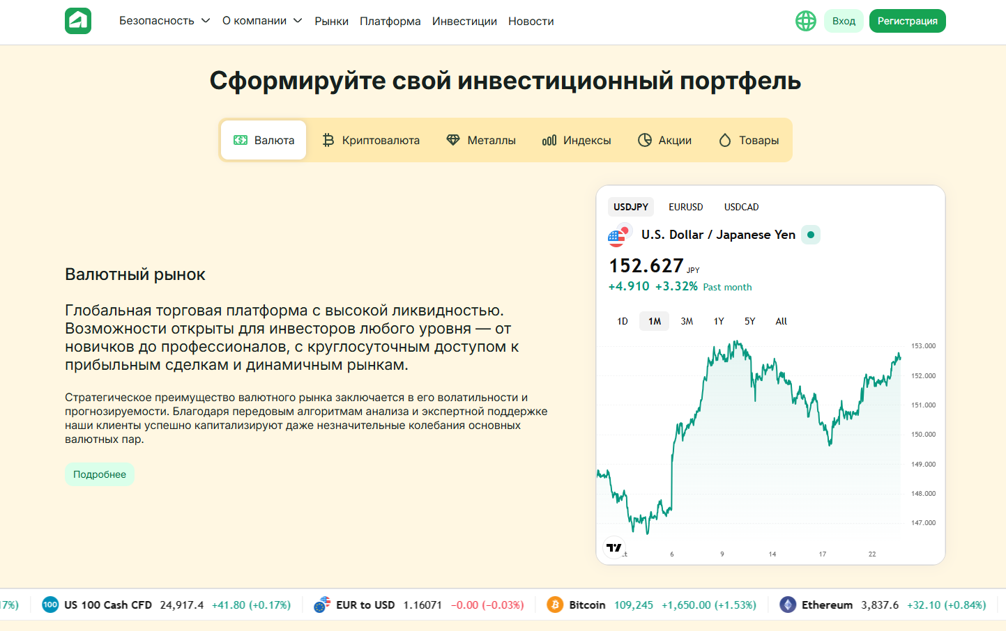 • Криптовалюты – возможность торговать криптоактивами (открывается на продвинутых типах счетов).