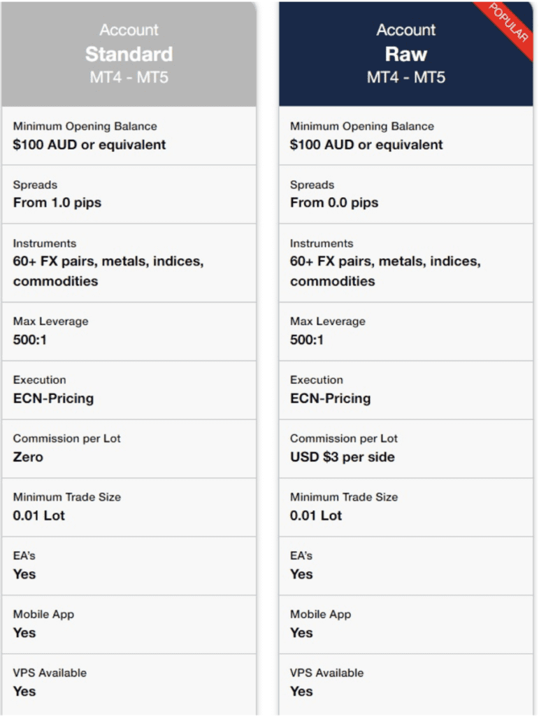 MetaTrader Standard против счета Raw ECN: Счет Raw ECN компании FP Markets отличается конкурентоспособными спредами – в среднем 0,1 пункта. Счет Standard является более дорогим вариантом из-за значительно более высоких спредов (в среднем 1,2 пункта по состоянию на август 2022 года для EUR/USD).