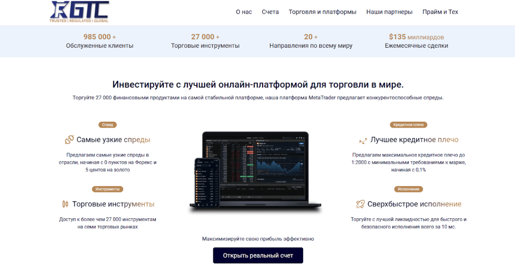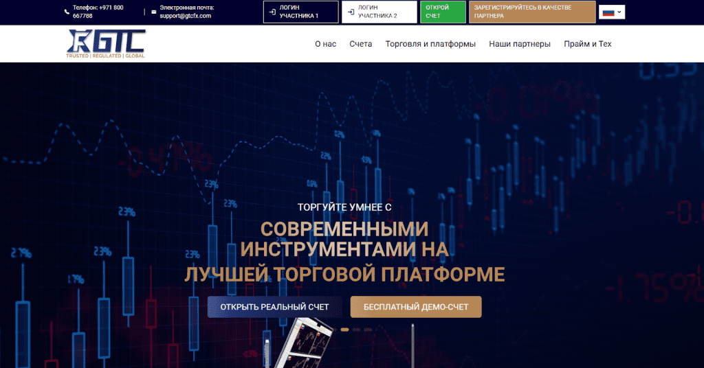 GTCFX представляет себя как надёжную и масштабную торговую платформу, предлагающую клиентам доступ к валютному рынку Forex, криптовалютам, сырьевым активам, индексам и акциям. Компания указывает, что присутствует на рынке с 2012 года и предоставляет услуги сотням тысяч трейдеров по всему миру. Среди преимуществ позиционируются выгодные торговые условия, поддержка популярных платформ (MetaTrader 4, MetaTrader 5, cTrader), институциональное исполнение ордеров и широкая география регулирования.