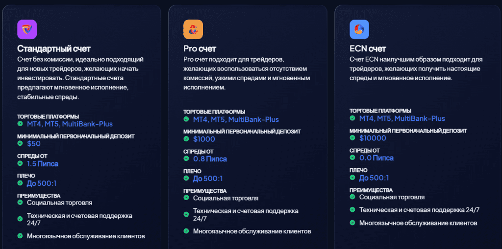 MultiBank Group предоставляет широкий выбор счетов, чтобы удовлетворить потребности как начинающих, так и профессиональных трейдеров:
