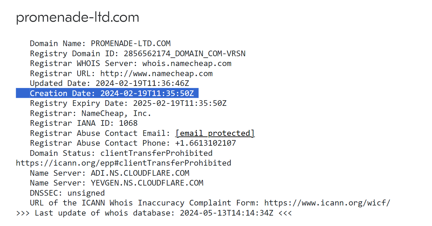 Согласно данным WHOIS, домен promenade-ltd.com был зарегистрирован 19 февраля 2024 года. Это означает, что сайт компании существует менее года, что вызывает дополнительные сомнения в её надежности и стабильности. Короткий срок существования указывает на недостаток опыта и отсутствие проверенной репутации на рынке. Новые компании, особенно в финансовом секторе, часто не имеют необходимых систем безопасности и управления рисками, что может привести к значительным проблемам для клиентов. Таким образом, дата основания сайта является еще одним фактором, который следует учитывать при оценке риска сотрудничества с Promenade Ltd.